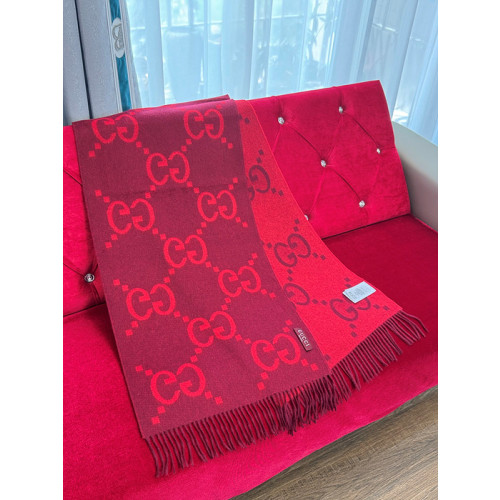 구찌 캐시미어 자카드 머플러 (컬러 레드)
