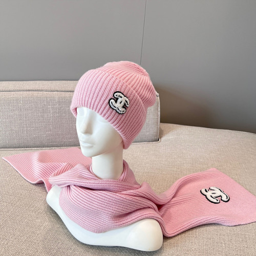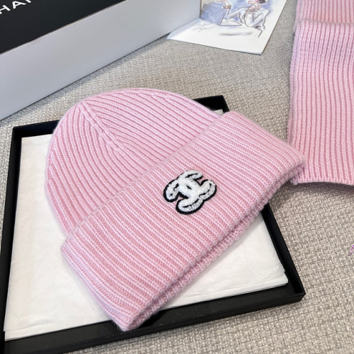 샤넬 CC 로고 리브 니트 비니 & 머플러